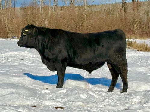6M is very much like his sire, smooth, clean and a strong hip but with the extra length that comes from his dam’s side. His mother has been a great cow, producing both powerful bulls and maternal females that have perfect udders, great feet and lots of milk.